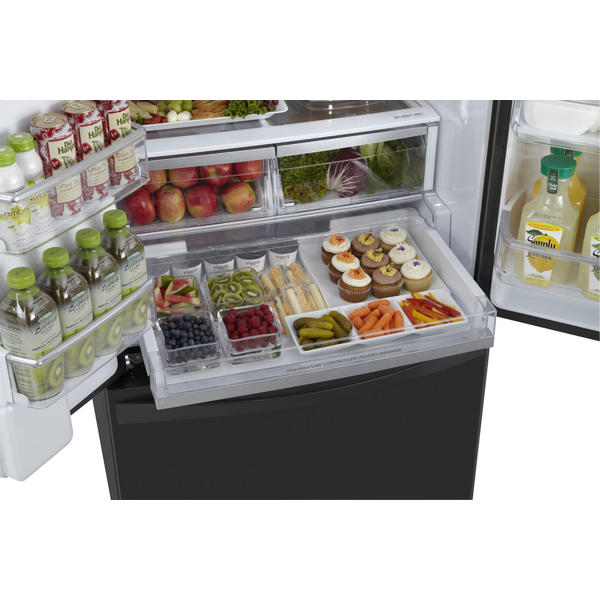 French door refrigerator generous door storage adjustable tempered glass shelving and a full width pantry drawer give you and the family plenty of space to keep fresh produce deli meats snacks.
