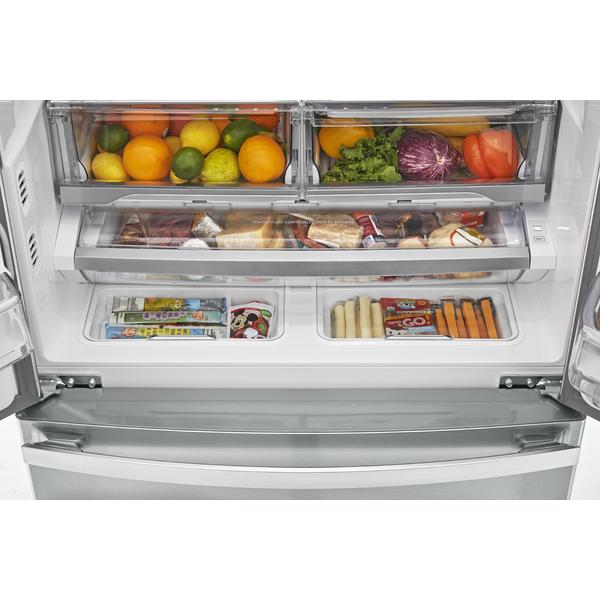 French door refrigerator is chic smart and spacious.